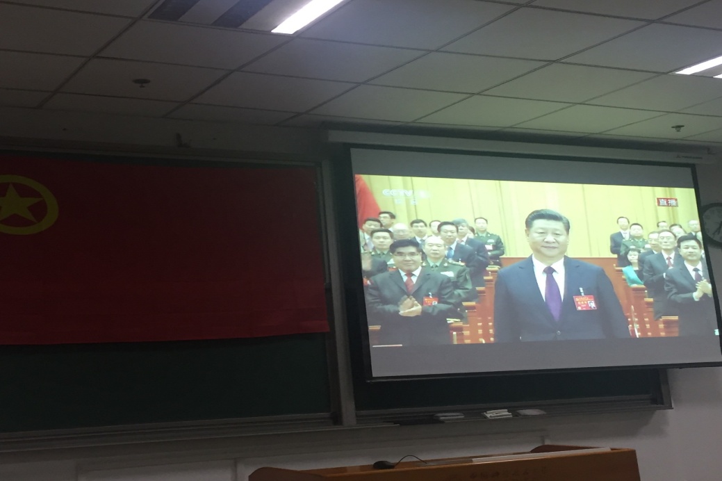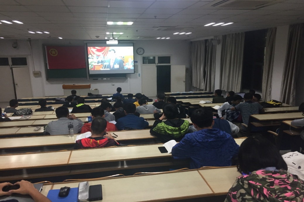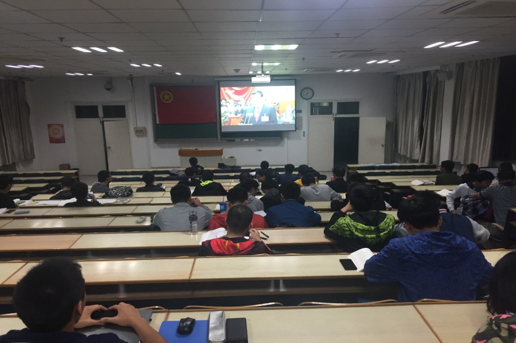 金秋时节,全党全国各族人民期盼已久的中国共产党第十九次全国代表大会开幕会于10月18日早九点在北京顺利召开,会上中共中央总书记习近平代表第十八届中央委员会向大会作报告。为更好的学习近平总书记讲话精神,加快落实共青团员“一学一做”,在17级信院四班团支委团支书王刘畅的组织下,17级信院四班“喜迎十九大”主题班会于10月18日晚6:30在3C304教室召开。在王刘畅同学简单地介绍之后,本次班会正式开始,会上由王刘畅同学组织同学们观看十九大开幕会录播视频。总书记的报告对过去五年的工作进行历史性回顾,对未来做出谋划和部署,同时也提出新要求和新阐述,报告内容丰富、新意叠出。同学们被全面、深刻的报告深深吸引,三个半小时的报告会,同学们聚精会神,不时低头思索,不时提笔记录,一边认真观看,一边用心思考。晚上9点整,录播视频播放完毕,本次班会顺利结束。