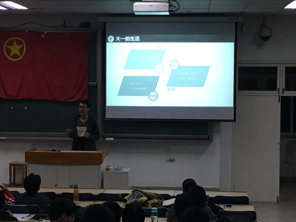 紧接着,凌宇学长分享了他大学的生活。凌宇学长不仅学习成绩优异,而且还参加了各种各样的活动,譬如robot game,校园歌手大赛等。他丰富多彩的大学生活吸引着3班的各个同学,让同学们了解到学习虽是作为大学生的主要任务,但同时我们也应该丰富自己的业余生活,让大学有更多的乐趣与回忆。