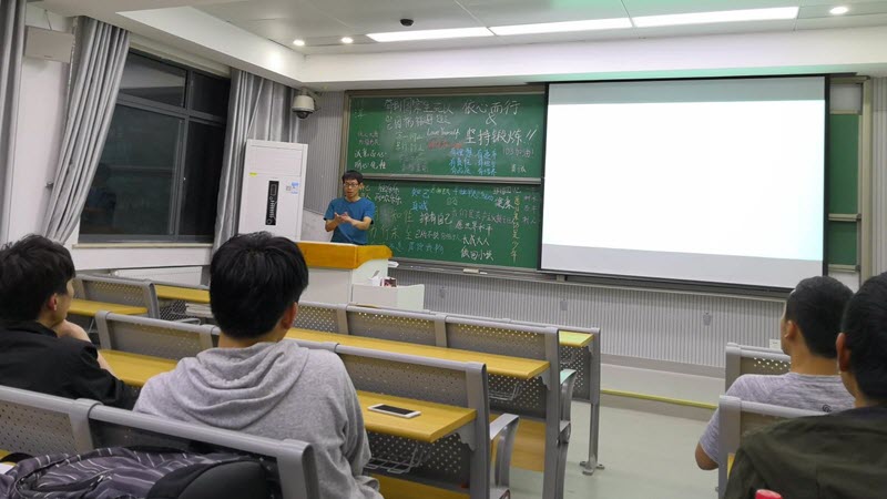 最后班会在王老师的总结中结束,王老师结合自己的生活经历告诫我们新一代青年人应有怎样的的精神面貌与生活作风,希望我们每一个人都能做到“立德树人,爱国荣校”。