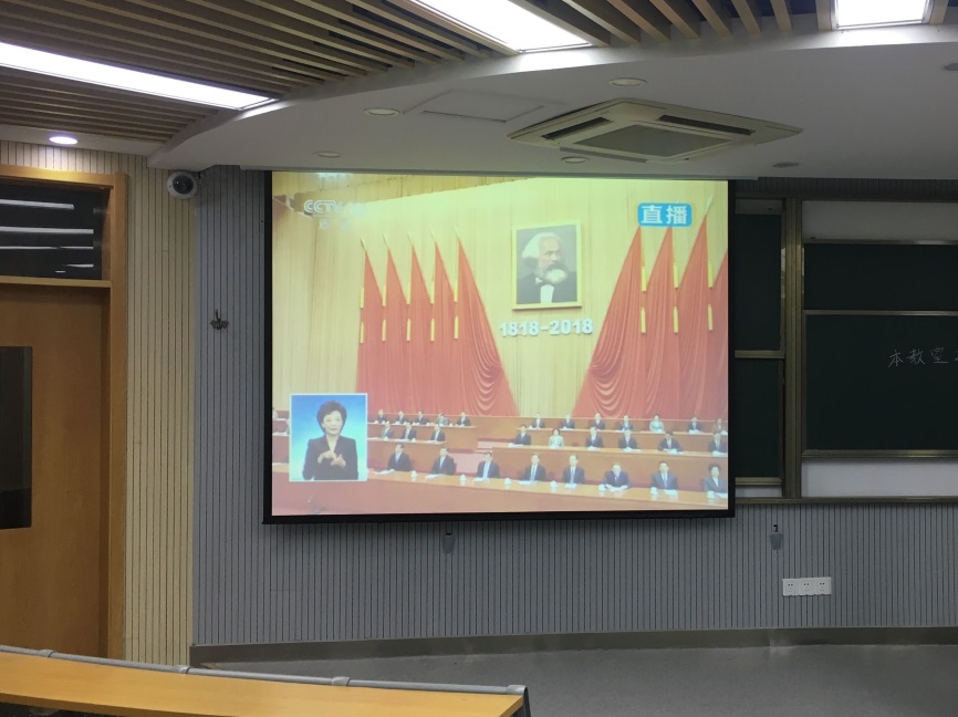 谢老师先播放了习近平总书记在纪念马克思诞辰200周年大会上的发言的节选视频。