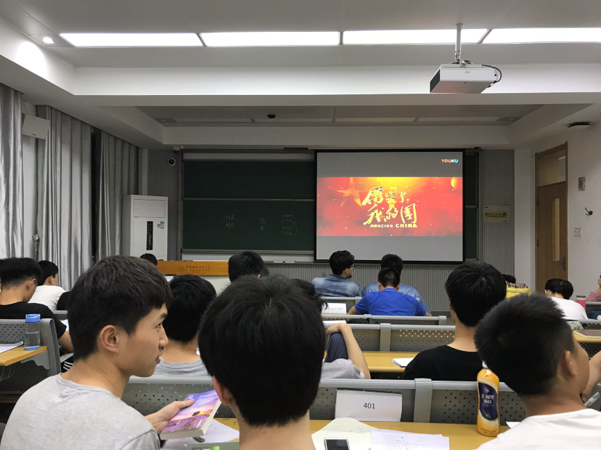 讲完了四个科大人的事迹后,吴飞宏同学开始给大家放映电影《厉害了,我的国》,这部电影以航拍的方式丰富地展现了我国在这几年的迅猛发展,特别是看到和我们科大有关的“墨子号”量子通信卫星,大家热血沸腾,激动地鼓掌了。