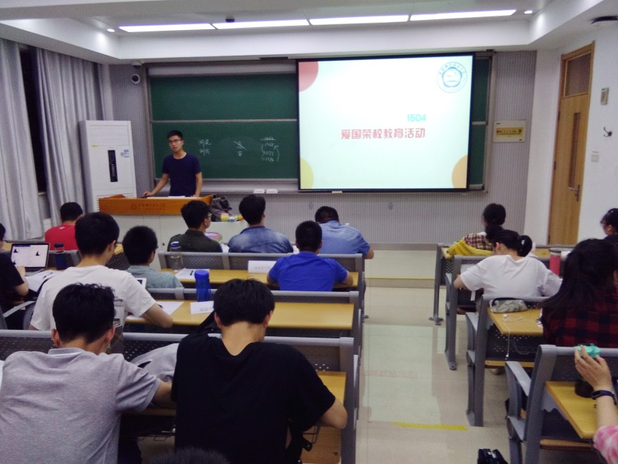 5月21日晚上,信息学院本科1504班同学聚在3A109教室,召开“爱国荣校”主题班会,本次班会由副班长吴飞宏主持。