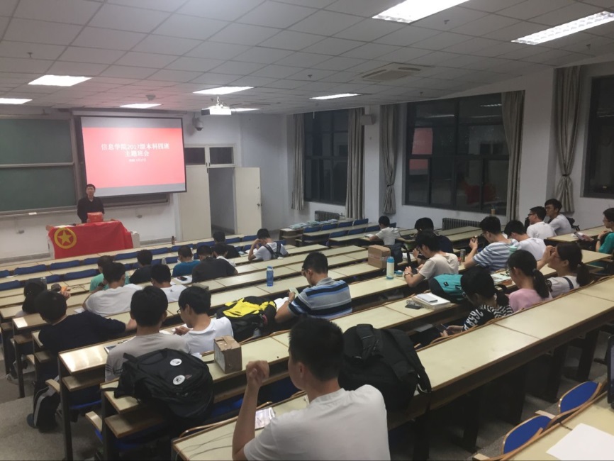 5月2日,在“五四”青年节即将来临之际,中共中央总书记、国家主席、中央军委主席习近平在北京大学考察,考察期间在与北大师生座谈时发表了重要讲话。为深刻贯彻落实学习近平总书记讲话精神,5月17日晚,信院2017级四班在3C103教室召开主题班会。