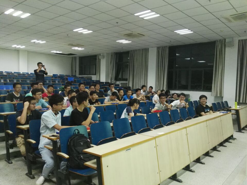 同学们先后进行了知识竞答,击鼓传花,猜数字等游戏。其中,程志华同学带领的第三小组,在知识竞答中获得了第一名的好成绩,每个获得了最终大奖——抱枕。下图为同学们上台领奖。