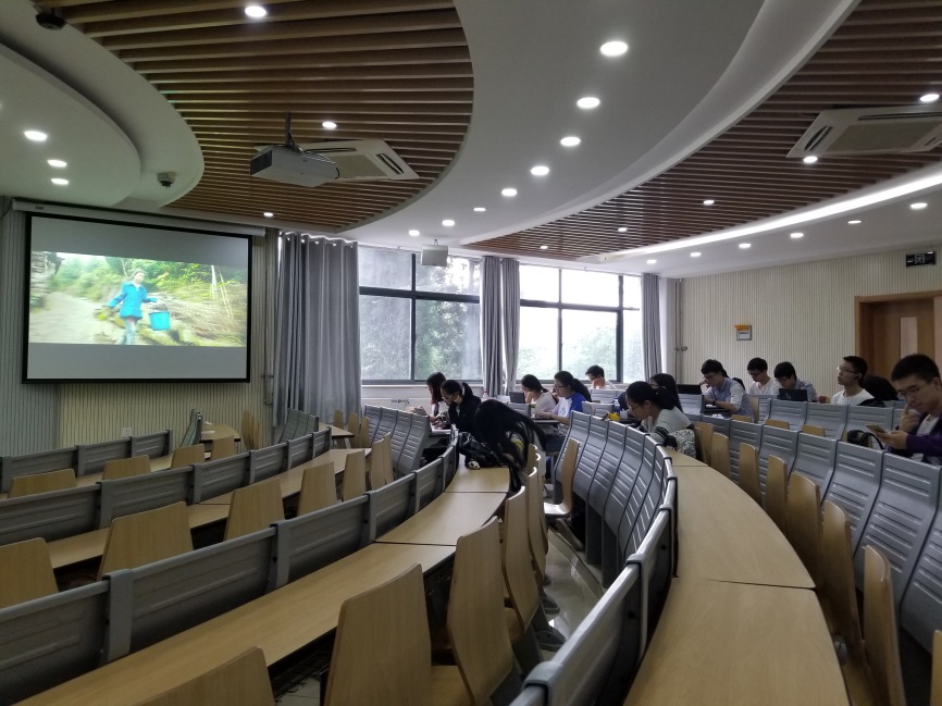 观影活动于下午四点准时开始,在同学们期待的眼神中,电影正式开始放映。《厉害了,我的国》由中央电视台和中国电影股份有限公司联合出品,在90分钟里全景展现自党的十八大以来我国在新发展理念下取得的历史性成就:人类历史上最大的射电望远镜FAST、全球最大的海上钻井平台蓝鲸2号、磁悬浮列车研发、5G技术、全世界最大的基本医疗保障网、173项扶贫政策……没有说教,没有空洞的大道理,将一些平凡人的所思所想与观众分享,有科学家,有扶贫干部,也有海岛上的普通医务工作者。正是千千万万普通人的创新与奉献,这个时代才有如此伟大的成绩。