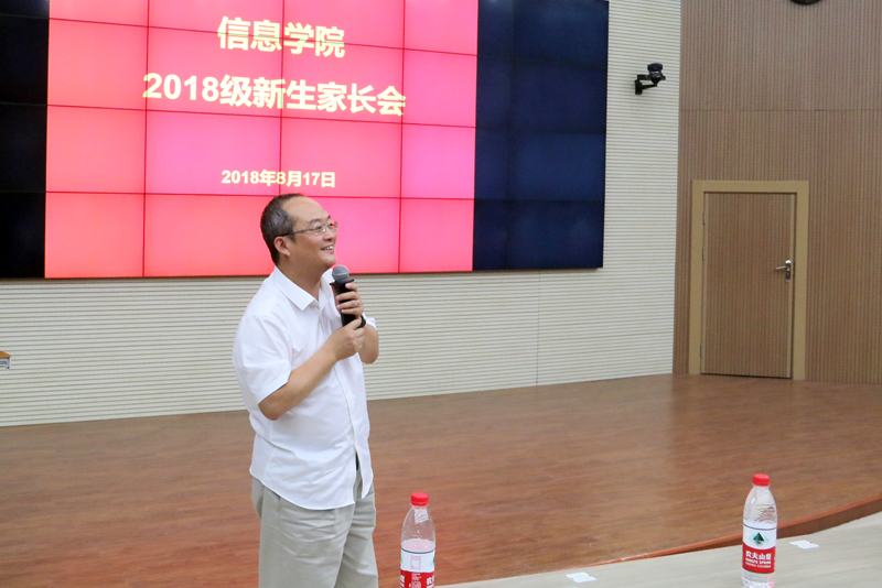吴枫院长向新生及家长的到来表示欢迎,同时介绍了信息学院学科发展和培养优势,希望同学们勤奋学习,充分利用好大学四年时光,为进一步深造奠定良好的基础。