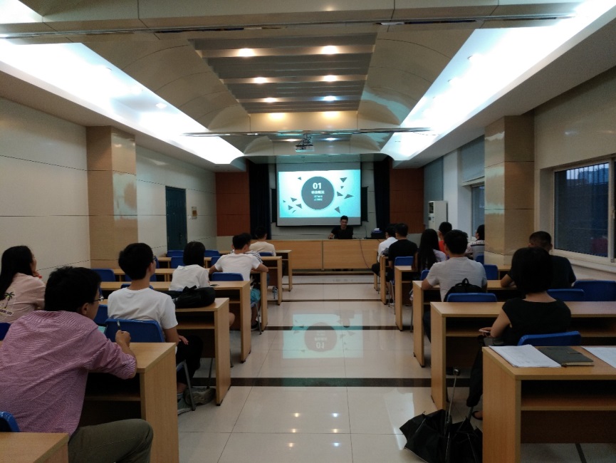 首先,院研究生会主席时争光为大家致辞,他对到场参与面试的人员表示热烈欢迎,之后对院研会的历史,以往的活动,以及各个部门设置进行了介绍。最后,时争光主席预祝大家能够顺利的进入自己心愿的部门。