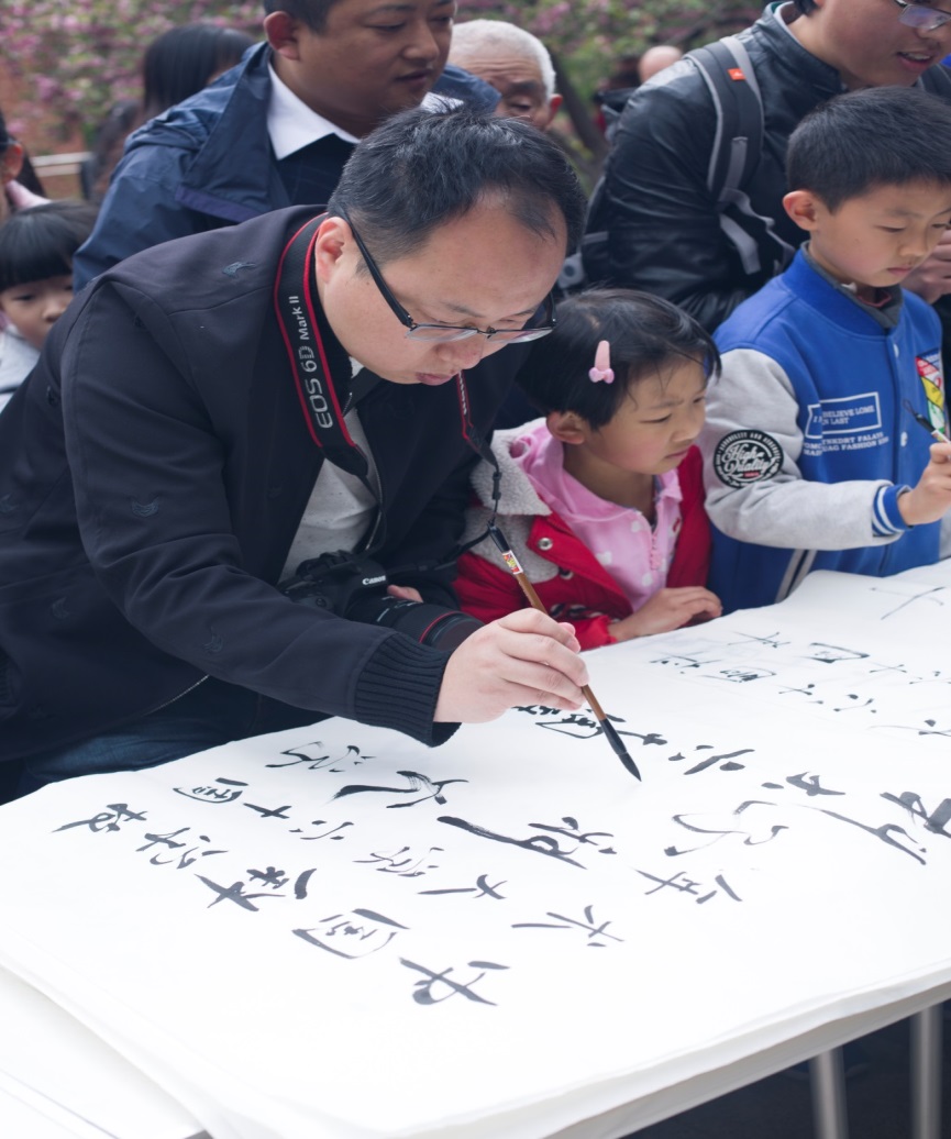除此之外,学生和市民还借用书法的形式表达了对中科大60周年校庆的深深祝福,完成一幅书法作品就可获得一枚活动印章。投壶作为一项中国的传统娱乐活动吸引了很多小朋友的参与,大家努力瞄准要把箭掷于壶中,现场欢声笑语好不热闹。猜花谜也十分有趣,大家根据活动现场提供的关于花的描述,猜花的名字,猜中即可获得一枚章印,花与这盎然的春天,再合适不过了!