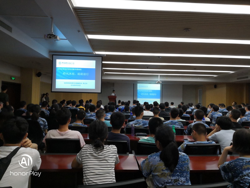 陈书记首先为同学们介绍了18级各班的班主任,同学们为老师们送上了热烈的掌声。随后,陈书记为同学们介绍了信息学院的硬件条件,如办公、科研、实验用房的楼宇分布及物理空间,让我们体会到了信息学院的实力。陈书记还向同学们展望了科大高新园区及信息学院的规划,令我们憧憬。
