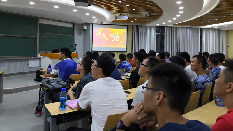 会议第二项议程中王老师向同学们进行了初步的入党宣讲。自从共产党执政以来,中国的局面发生了彻底的变化,经济社会发展打开了前所未有的新局面,开启了一段珍贵的稳定繁荣年代。王老师殷切希望并倡议同学们积极向中国共产党靠拢,同学们对倡议报以热烈的掌声。随后王老师播放了关于入党流程的视频,该视频以动画形式讲述了加入中国共产党所需经历的流程。同学们观看时全神贯注,对入党的高标准严要求有了更深刻的认识。