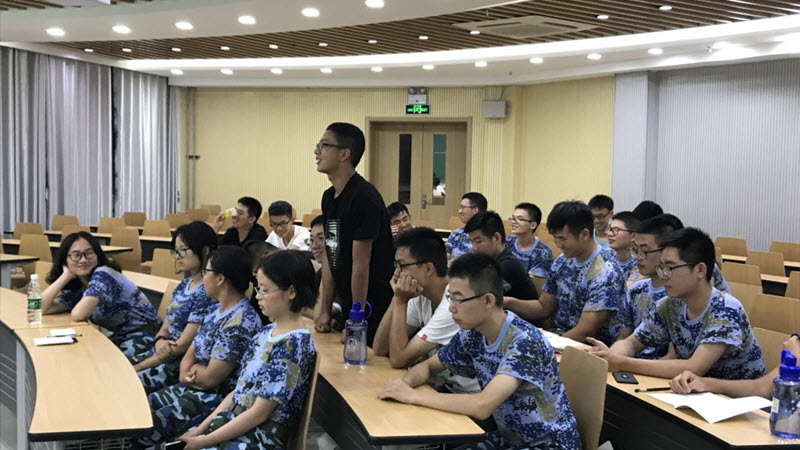王老师随后嘱托同学们:我校在人才培养方面有深厚的传统,校风严谨务实,适合潜心学习;同时学校的评价体系也鼓励大家积极参加科研创新类竞赛。希望同学们能利用好学校条件,能够做到心理沉静,思维严谨,敢于创新,不负韶华。