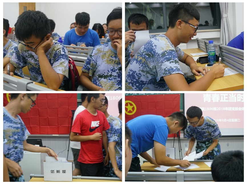 2018年9月4日(周二)晚七点半,信院本科1806班的全体同学、班主任王百宗老师、信息学院范姝老师齐聚3A210教室,召开了班级第一次全体团员大会。本次大会以“青春正当时”为主题,大会主要议程为选举班级团支委委员和班委委员,正式组建起第一届班级班团委。