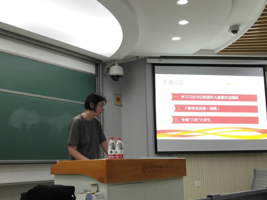通过此次班会活动,同学们对习近平总书记考察中国科大的重要讲话精神和“六有“大学生的内涵有了更深入的理解,对加入中国共产党的阶段和步骤有了清楚的认知,圆满地完成了学习任务。