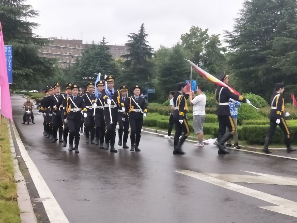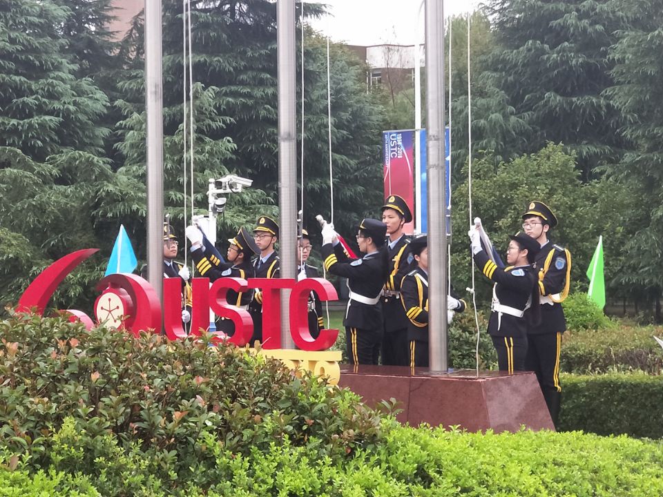 团支部副书记唐心怡宣布升旗仪式开始,九人的升旗方阵与十人护旗方阵在指挥官气势如虹的口令声中迈开铿锵有力的步伐向旗台前进。整齐的队列昂首阔步,器宇轩昂,将科大学生应有的朝气与斗志展现的淋漓尽致。