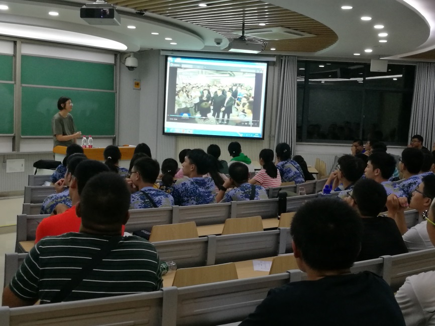 接下来刘桂英老师为大家具体介绍了“六有”大学生的具体含义,以老一辈科学家矢志报国和青年是国家未来主力军为例,说明了有理想、有追求、有担当、有作为、有品质、有修养的意义。在大学生活里,同学们要努力成为“六有”大学生,以最美的姿态去实现中国梦。