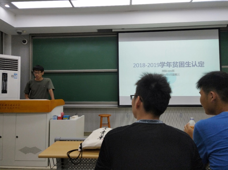 2018年9月5日(周三)晚六点,信院本科1806班班主任王百宗老师召集班里6位班干同学和4位非班干同学,在3A104教室开展了2018-2019学年贫困生认定工作。
