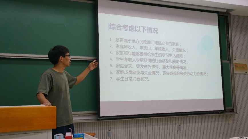 前期做了充分的工作,班主任在班级宣传了助学政策,积极动员有困难的同学申请,并在报到前与家长进行了沟通,提醒家长认真准备好《家庭经济情况调查表》。另外,还通过信息化系统进行意愿摸底。在入学教育期间,班主任通知同学进行了申报并整理综合了申报同学的信息(包括申报材料、家庭经济调查表、学生档案,还与部分学生家长进行了单独沟通),为开展班级贫困生认定工作做了充分的准备。