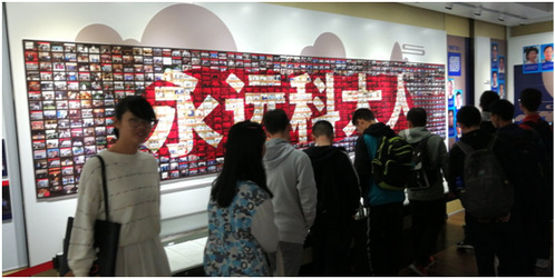 红专并进一甲子,科教报国六十年,老校长严济慈的题字“创寰宇学府,育天下英才” 既道出了科大的初心和使命,也总结了科大六秩以来在人才培养方面取得的累累硕果,在前厅熠熠生辉。