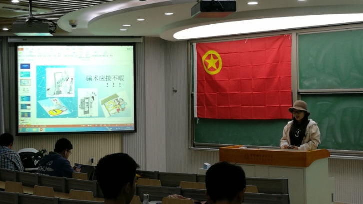 接下来,团支部书记赵鑫以幻灯片结合口头叙述的形式,从三个方面对网络信息安全详细讲解:哪些行为会导致网络信息不安全;如何避免发生此类情况;如果不幸遭遇信息泄露或网络诈骗等问题,该如何妥善处理。最后,赵鑫同学为大家总结了五大防范意识,更呼吁同学们不要怕事,要勇敢去与网络违法犯罪的行为作斗争。同时,同学们也应提高政治觉悟和意识,不轻信、不传播网络上的不实信息。