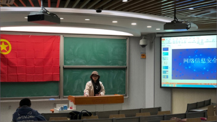 为了让同学们深刻地意识到网络信息不安全可能带来的危害,团支部书记赵鑫先为同学们播放了两段短视频。诙谐而充满比喻的视频立即吸引了同学们的注意力,但同时也发人深省,让同学们开始重新定位网络信息安全的地位。
