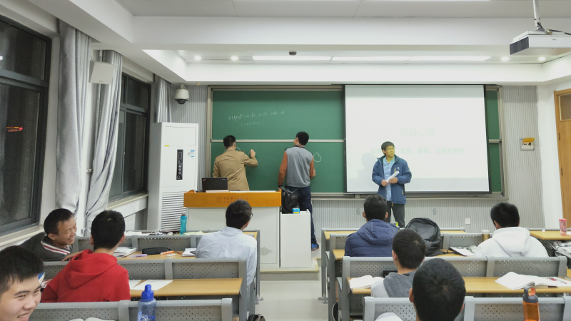 刘卓立同学的抛砖引玉后,班主任王百宗老师接过大旗,为同学们带来了一场以“积极心理学”为主题的报告。