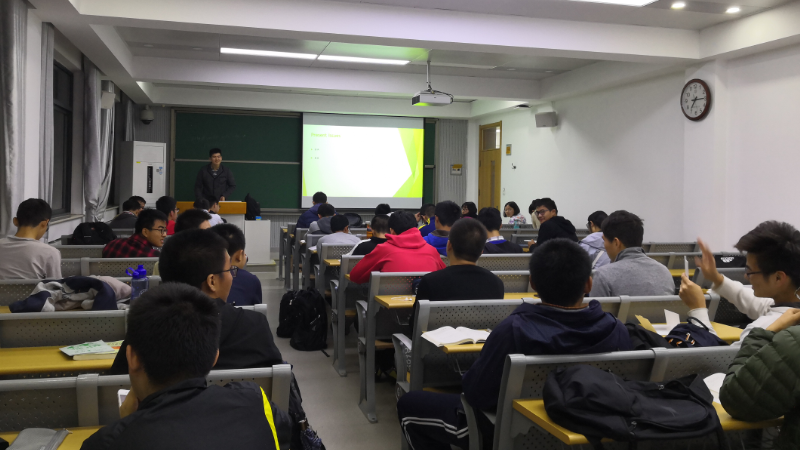 讲座的开场是刘卓立同学的简短报告。他结合心理委员培训的内容,着眼于心理问题的起因和解决办法,帮助同学们走出心理误区,减少心理矛盾,学会处理、改善人际关系,更好地适应现代生活、学习节奏,进一步融入校园。