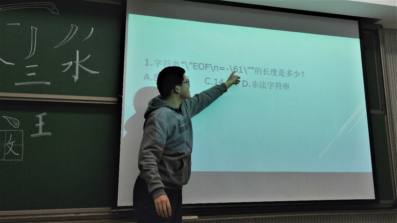 不知不觉,书法知识讲座在轻松愉悦的氛围中缓缓落幕,大旗最后交到了张鑫同学手中。面对即将到来的期末考试,他认真准备了35道程序题,从考察知识点、题目陷阱、思考角度等多个方面为同学们进行了全面的讲解。同学们重温了知识点,对考试充满了信心。