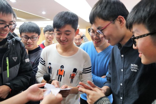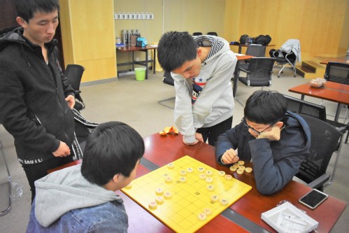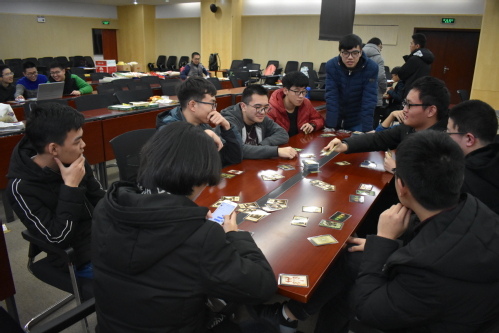 不同于去年的年末联欢晚会,今年的联欢会采取以游戏为主的游艺会形式,准备了三国杀、狼人杀、飞行棋等各类棋牌桌游。招呼上朋友来一局三国杀,策马驰骋;或者前去围观一局象棋对决,看棋手下一招妙手;或者悠哉游哉下一盘五子棋;又或者简单地比比运气,玩一盘飞行棋;还有同学带来电脑,与朋友们在暖烘烘的会议室惬意地玩一局大富翁。不论是下40分钟酣畅淋漓的象棋,还是在桌游中开怀大笑,这些难以描摹的欢快心情洋溢着整个会场。