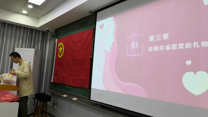 贺志扬精心设计了PPT,向大家介绍了“女生节”由来和发展,并朗诵了诗歌,随后代表1806班全体男生为女生送上了所有男生一笔一划写下的祝福贺卡以及代表男生心意的祝福蛋糕。