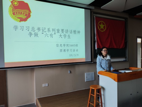 信息学院1603班组织“学习习近平总书记系列重要讲话精神,争做‘六有’大学生”团课学习活动