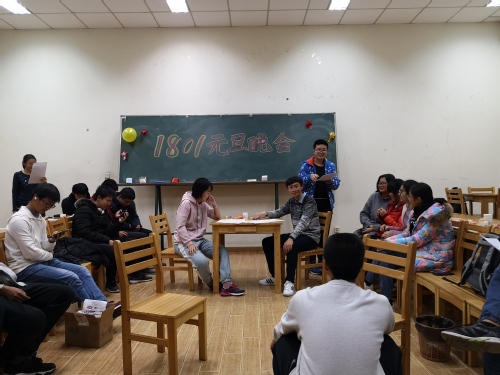 2018年12月30日,漫天飞舞的雪花,更加洋溢了元旦佳节的喜庆气氛。夜幕下的西区活动中心棋牌室,班委们正在为元旦晚会做最后的准备。温馨的灯光,备好的饮料零食,柜子上的奖品,正静静地等待着同学们的到来。这里,同学们就要第一次远离家乡过元旦,而我们将会让大家感受到如家一般的温暖。
