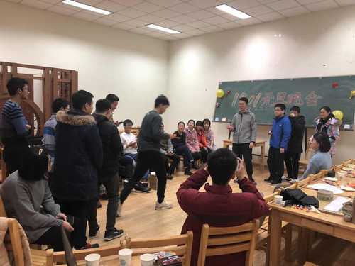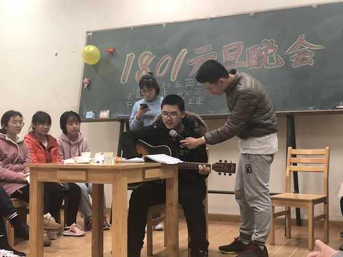 同学们陆续踏雪赶来,在喜庆的背景音乐中,19时30分,晚会准时开始。在班长的开场后,是班委同学集体表演的新编《西游》,其中融入了不少科大学子的日常和时下的流行语。虽然准备仓促,大家持稿上阵,可浮夸的表演还是逗得满座捧腹。