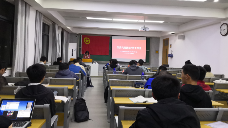 评选之前,团支书刘嫣嫣同学向大家宣读了优秀团员与团干的评选要求。同学们使用班级OAS系统,在慎重考虑后,进行了实名投票。根据最终的得票统计,推荐王毅龙和王嘉伟同学申报“优秀团干”称号,推荐赵泊尧、刘嫣嫣、储博涵、代宇涵、贺志扬、张胜楠、王力、曹欣源等同学申报“优秀团员”称号。