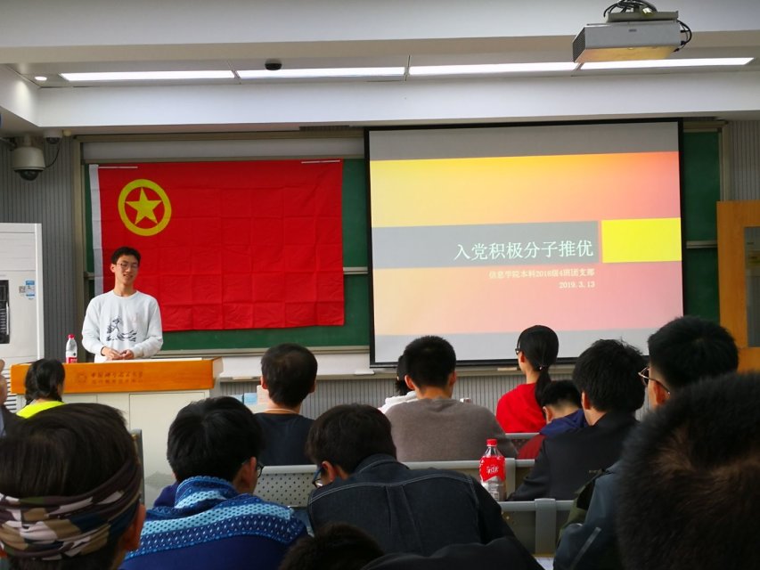 推优大会是基层团组织工作中的一项重要的工作,是共青团组织充分发挥党的助手和后备军作用的重要体现,也是广大团员青年健康成长的迫切需要之一。为了深入做好推优工作,履行党组织赋予共青团的光荣职责,2019年3月13日下午,信息学院本科1804班全体同学在第三教学楼教室中举行了支部推优大会。
