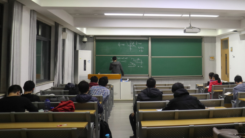 本次翻转课堂由我班第一学习小组的成员们共同准备,针对大学物理进行“授课”。首先登上讲台的是徐乾同学,他主要负责和其他学习小组的成员共同整理近期学习上遇到的疑难题目。徐乾同学讲解的内容十分丰富,包括运动轨迹问题、物体在非惯性系下的受力问题以及动量定理的应用等。虽然对于大一新生来讲,物理是一门难度颇高的学科,但在徐乾同学耐心又详细的讲解下,在场的同学们都专注地听讲,学到了很多解题的思路和方法。