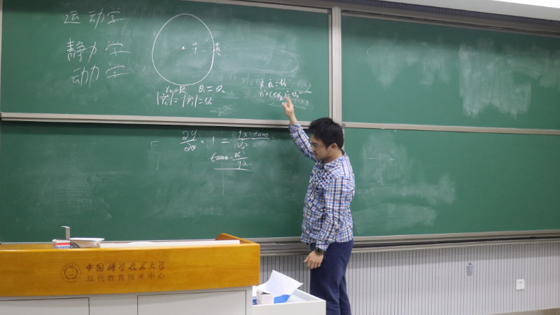 本次翻转课堂由我班第一学习小组的成员们共同准备,针对大学物理进行“授课”。首先登上讲台的是徐乾同学,他主要负责和其他学习小组的成员共同整理近期学习上遇到的疑难题目。徐乾同学讲解的内容十分丰富,包括运动轨迹问题、物体在非惯性系下的受力问题以及动量定理的应用等。虽然对于大一新生来讲,物理是一门难度颇高的学科,但在徐乾同学耐心又详细的讲解下,在场的同学们都专注地听讲,学到了很多解题的思路和方法。