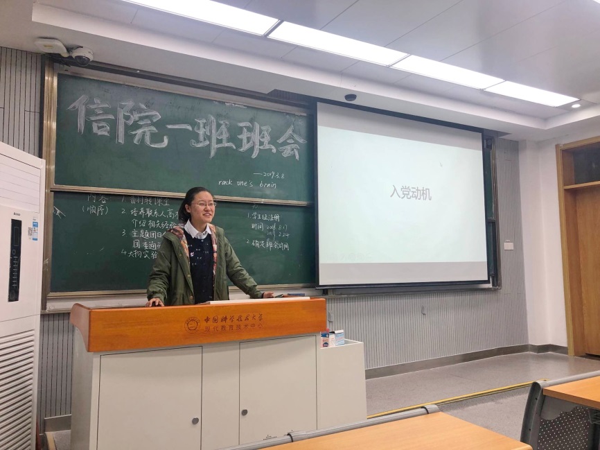 接下来,团支书赵明坤同学向大家深刻讲解了为什么要入党来鼓励大家积极入党。许多同学本来认识不到党员的先锋作用,经过赵明坤同学生动细致的讲解,大家意识到了党员的社会责任感,入党积极性得到了增强。