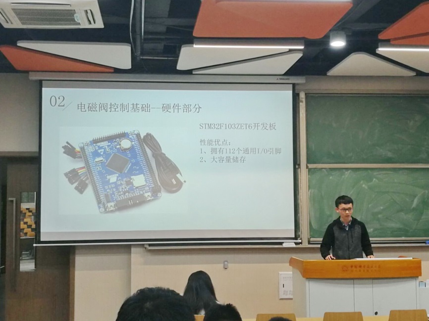 之后,卢志颖同学进行了电设课程小组作品 “数字水幕”的展示报告。他从灵感来源、初次搭建、优化改进、心得体会等方面讲述了“数字水幕”从诞生初期到最终成果展示的全过程。在这个过程中,种种困难在一次次的攻坚中克服,优化与创新在一次次的迭代中完成。卢志颖同学表示,在完成这个作品的过程中,他体会到了团队合作的重要性,这个项目工程量大,每个人的付出都至关重要;同时他表示,在接触新的工具时,要学会看手册,遇到问题要自己先思考。