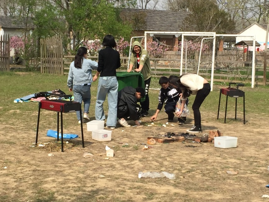 烧烤活动结束后,一部分同学自愿留下来清理垃圾,体现了当代大学生对于保护环境的重视。