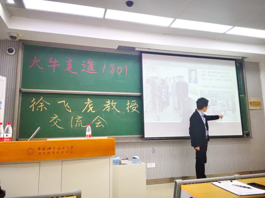 在班主任刘双红老师以及全班同学的努力下,2019年4月4日下午,中国科学技术大学信息学院1801班在3A109成功举办了徐飞虎教授有关量子通信方向的交流会。