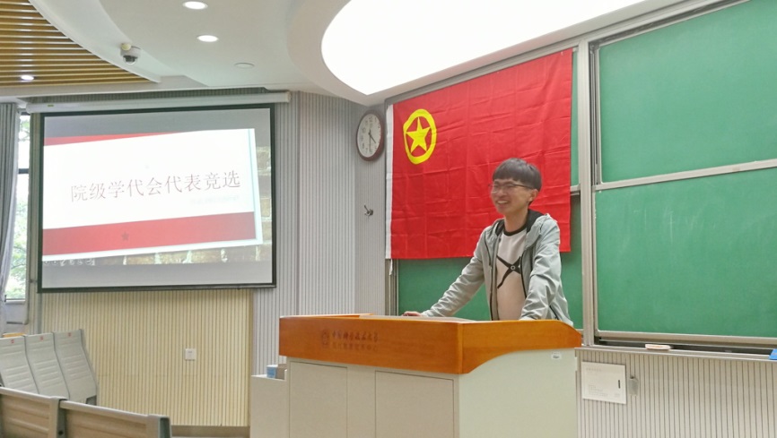大会开始,主持人向同学们简要地介绍了学代会并让同学理解到了选举学生代表的重要性和必要性。随后,四名代表候选人同学一一上台演讲,分别讲述了从进入科大至今他们所做过的一些学生组织和学生社团工作,并对未来的工作目标做出了展望。同学们从四名候选人的演讲中,能够感受到他们想要为同学们解决实际问题,为同学们的权益着想的热切心情。