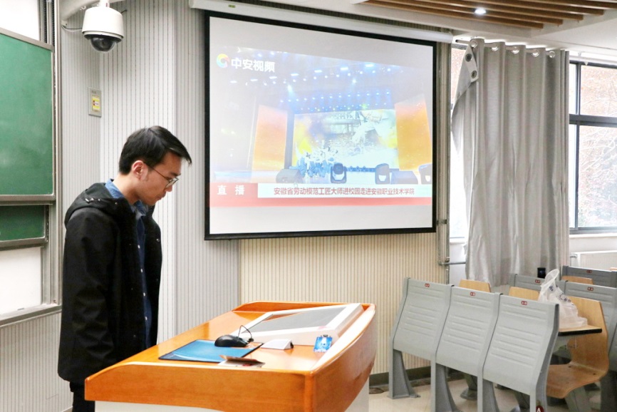 信息学院1701班组织收看安徽省劳动模范工匠大师进校园活动网络直播