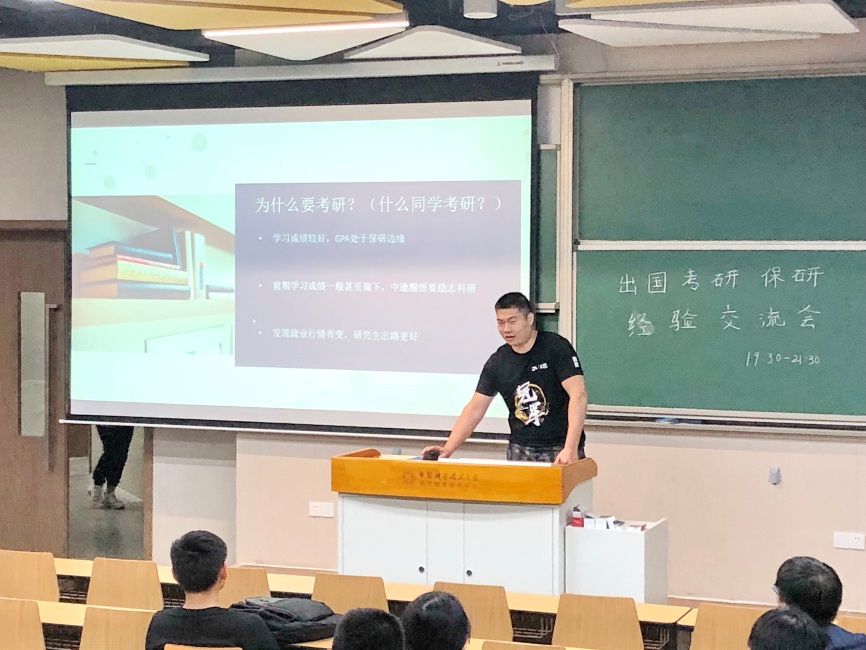 当晚九时许,三位同学分享完毕后,本次出国考研保研经验交流会圆满结束。三位主讲人经过精心准备,详细扼要地分享了自身的经验和心得,为同学们日后出国考研保研方向的选择和相关能力培养提出了宝贵的意见和建议。与会同学热情高涨,积极与主讲人沟通交流,主动了解自己感兴趣的相关问题。感谢三位同学的经验分享,同学们对出国、考研和保研等继续深造方向有了更直接的了解,明确了方向选择后的一般学习规划,更认识到了道路选择对人生发展的重要意义。