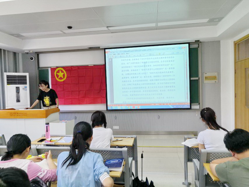 2019年5月22日下午,在团支书郭宗颖的主持下,信息学院1804团支部全体成员于西区3C104教室共同学习了习近平总书记在纪念五四运动100周年大会上的重要讲话,班主任刘桂英老师也参与了此次活动。习主席的讲话引发了热烈反响。