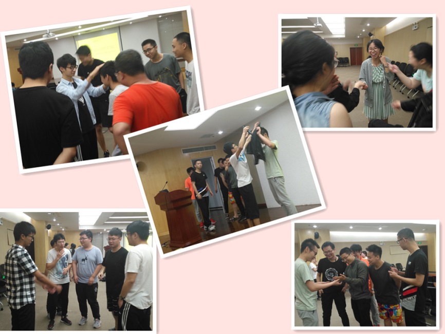 活动首先从暖场游戏“找零钱”开始。所有同学围成一个圈,主持人石文焘站在中央,当主持人喊出钱数,同学们需根据钱数来抱团,最后未能抱团的同学需要接受惩罚,大象鼻子绕五圈。当看到接受惩罚完的同学晕头转向站不稳的情景,气氛一下子活跃起来,大家开心又紧张,想看到别人接受惩罚,又怕未成功抱团的是自己。现场气氛迎来了一次小高潮。