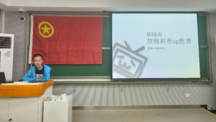 贺志扬同学为同学们播放了三位up主以诙谐搞笑的口吻介绍科学知识的剪辑视频。