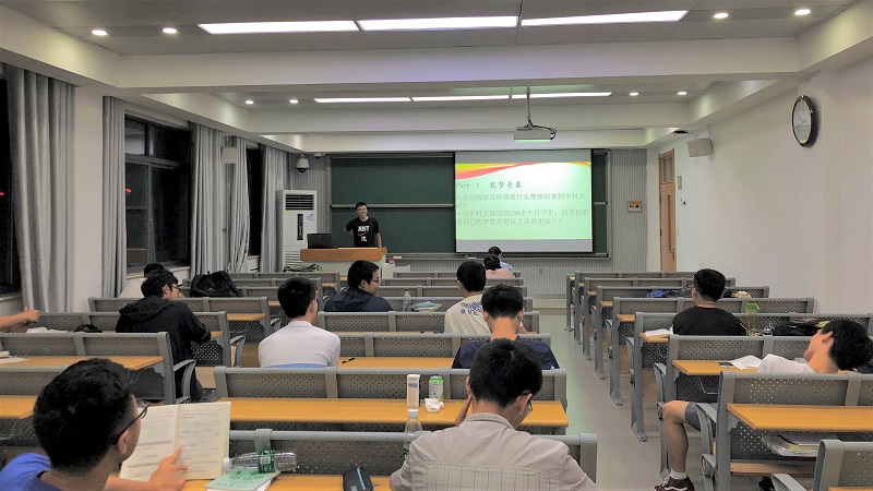 “筑梦青春,追梦成长”,在宣讲会开始的时候,心理委员高泽恩就向同学们描述着什么是梦想,我们应当如何去实现梦想。当然,追梦的道路并非笔直,高泽恩用自己从小到大学习英语的亲身经历来说明追梦的路上最难能可贵的是坚持,这就需要我们有强大的心理素质作为后盾。