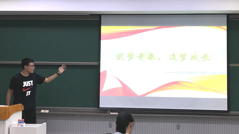 2019年5月25日晚,信院1803班在3A409教室举行了一次有关心理健康教育的班级宣讲会。本次活动由心理委员高泽恩同学主持,围绕“525,我爱我”这样一个自我充实、自我关怀的主题展开。