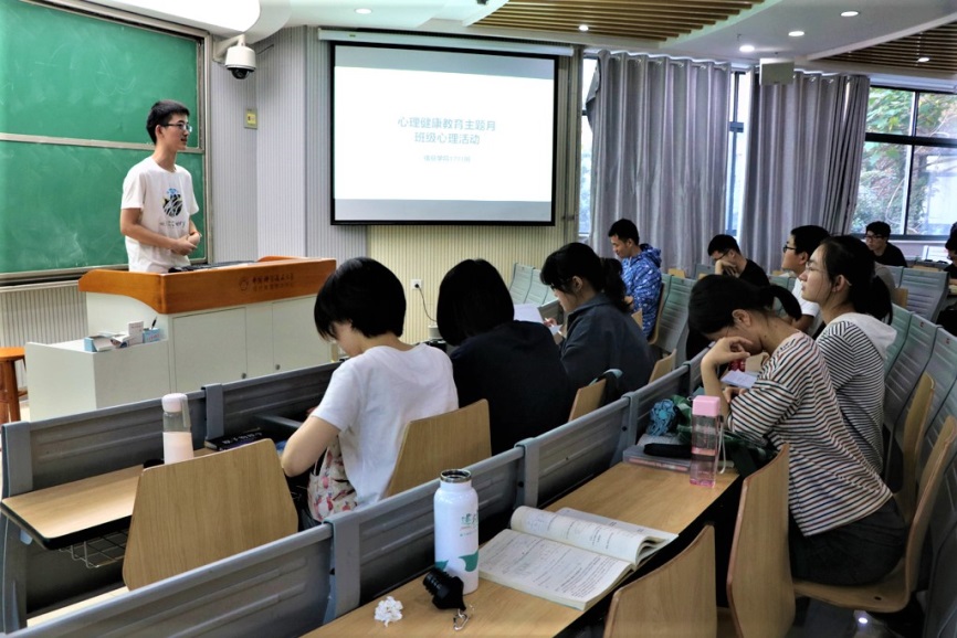 首先,心理委员潘霄瀚同学向全班同学简要说明了本次活动的由来与目的。他简短地介绍了“全国大学生心理健康日”。每年的5月25日是全国大学生心理健康日,取自谐音“我爱我”,意为“爱自己才能更好地爱他人”,鼓励大学生认识自我,接纳自我,信任、宽容他人,向他人传播积极乐观的生活态度。结合此次活动,他倡导同学们相互关怀,相互理解,共同关注身边人的心理健康。