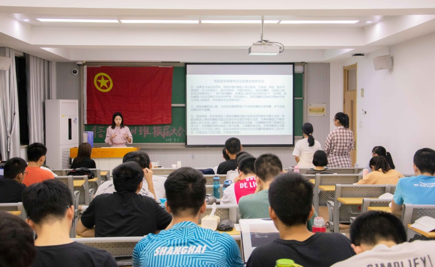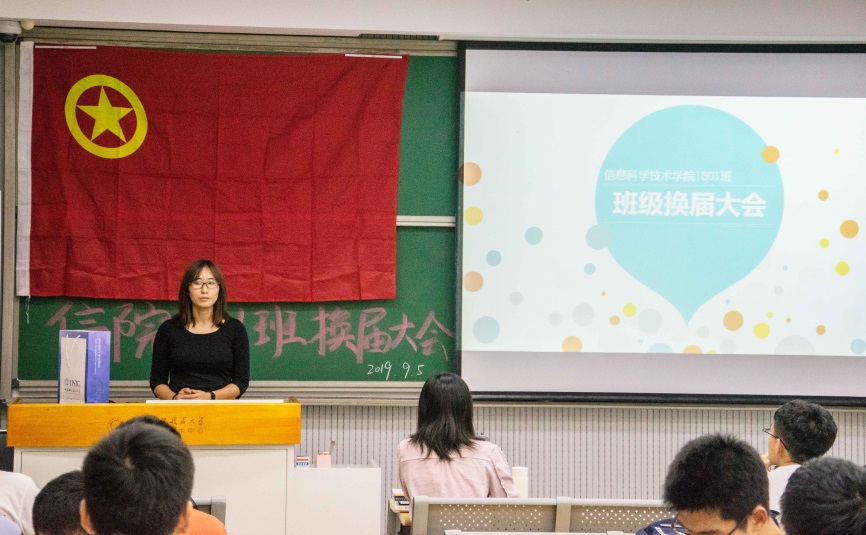 黄金九月,栀子飘香,莘莘学子,共济一堂。信院1801班四十三名同学于9月5日晚在3A110教室集合,举行1801班班委团委换届大会。